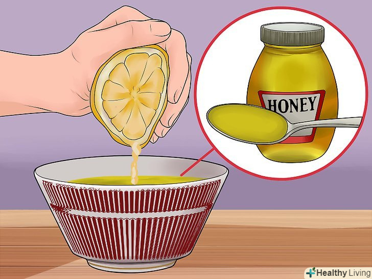 Змішайте мед з лимонним соком. Мед можна використовувати сам по собі або змішувати з іншими інгредієнтами, щоб посилити його дію. Вичавіть в миску або тарілку сік з половини лимона. Після цього додайте трохи (пару чайних ложок) меду і перемішайте його з соком. Спочатку вмийтеся, а потім нанесіть приготовлену суміш на шкіру обличчя і залиште приблизно на п'ять хвилин.- Змийте суміш прохолодною водою.