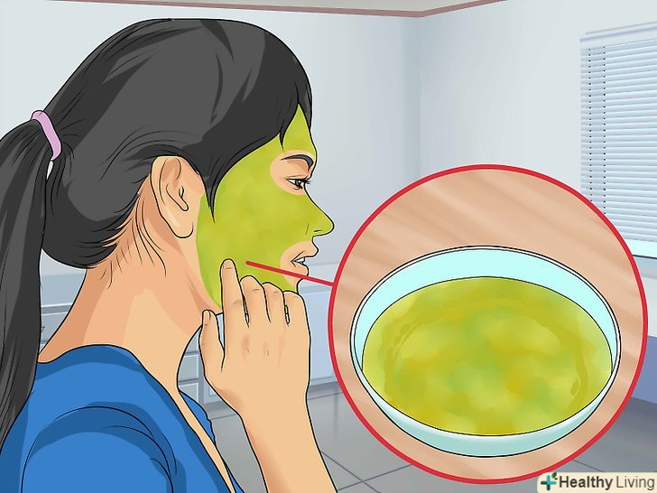 Нанесіть пасту на шкіру обличчя. після того як ви приготуєте м'якоть авокадо, Вимийте обличчя і руки і нанесіть пасту на шкіру. Залиште пасту на 20-30 хвилин, потім змийте її теплою водою і насухо промокніть обличчя рушником. [12]