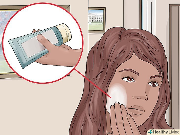 Нанесіть Очищаючий крем. такі креми можна придбати в супермаркеті або аптеці, вони очищають шкіру і видаляють з неї скупчилися бактерії. Подібно до інших засобів по догляду за шкірою обличчя, у продажу є безліч різних очищувальних кремів. Пошукайте крем, який підходить для вашого типу шкіри (жирної, сухої, чутливої або змішаної).- Якщо у вас чутлива шкіра, уникайте кремів на основі спирту або вазеліну. [2]