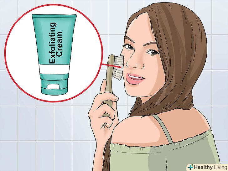 Відлущуйте шкіру. можна використовувати відлущуючий миючий засіб, щоб краще очистити шкіру від бактерій, відмерлих клітин і токсинів. Можна також замість покупного крему зі скрабом злегка терти шкіру сухою щіткою. Вважається, що це покращує кровообіг, допомагає видалити відмерлі клітини і токсини і тим самим очистити шкіру. [4]