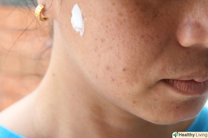 Спробуйте бензоїлу пероксид. бензоїлу пероксид-відмінний точковий засіб від вугрів, яке бореться зі звичайними і білими вуграми і великими прищами. Він вбиває бактерії в порах, запобігаючи появі акне. Хоча бензоїлу пероксид і ефективний, він може викликати сухість і лущення шкіри, так що варто використовувати його тільки в невеликих кількостях. Бензоїлу пероксид можна купити без рецепта у формі кремів, лосьйонів, гелів, медичних дисків і очищувальних засобів. [5]