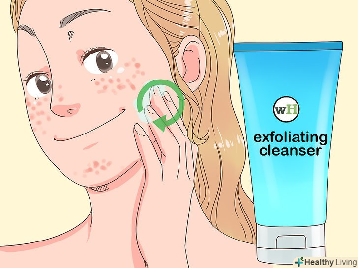 Відлущіть вашу шкіру. у той час як миючий засіб бореться з бактеріями на вашій шкірі, пілінг допоможе видалити всі омертвілі її клітини і зробить шкіру гладкою. Цей крок слід після вмивання очищує засобом. Таким чином оголюються клітини, що вимагають відлущування. Є кілька способів того, як це можна зробити:- Фізичне відлущування шкіри – використання скрабу або мочалки під час прийняття душу. Після відкривання пір потрібно промасажувати обличчя скрабом або мочалкою. Це досить ефективний метод додання шкірі гладкості.