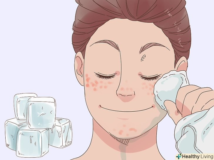 Завершіть процедуру, протерши обличчя кубиком льоду. це завершить вашу процедуру. Лід закриє ваші пори і тим самим запобігає потраплянню бруду і бактерій в шкіру, залишаючи її чистою. Подумайте про цей крок як про латання повітряної пробки; ви відкрили пори, видалили бруд, а тепер вам потрібно закрити пори, щоб закріпити результат.- Якщо під рукою немає кубиків льоду, вмийтеся холодною водою, хоча це не буде настільки ж ефективним.