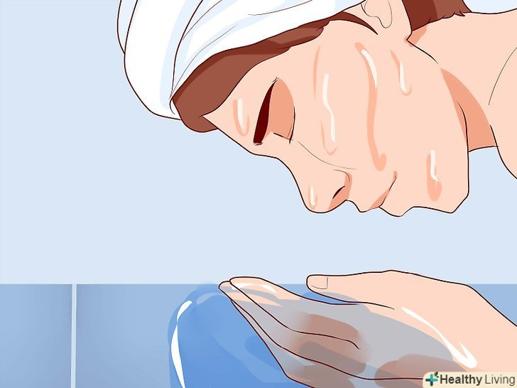 Вмийтеся перед тим, як лягти спати. якщо ви хочете швидко очистити шкіру, почніть вмиватися перед сном. Використовуйте м'який засіб для очищення шкіри і теплу воду. Не тріть шкіру занадто сильно, щоб не викликати роздратування. [15]