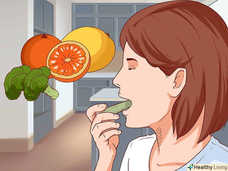 Дотримуйтесь здорового харчування. харчування може впливати на вашу шкіру. Щоб домогтися довгострокового позитивного ефекту, необхідно їсти багато фруктів, овочів, цільних злаків і пісних білків. Зв'язок між харчуванням і шкірою досі не ясна, але згідно з деякими дослідженнями, здоровий дієта може зробити шкіру помітно молодшою і здоровішою. [17]