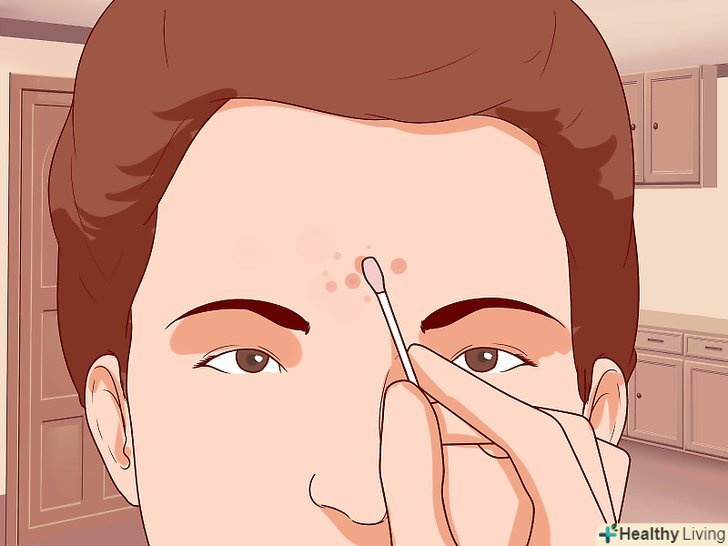 Обробіть проблемні місця підсушують лосьйоном. купіть підсушує лосьйон в місцевій аптеці або супермаркеті. Знайдіть лосьйон з антибактеріальними властивостями, до складу якого входить сірка і саліцилова кислота. Ватною паличкою нанесіть лосьйон на прищі і вугри. [12]