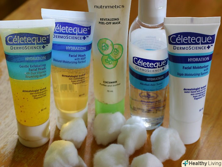 Якщо у вас їх немає, вам потрібно буде купити миючий засіб, тонік, зволожуючий крем, засіб для пілінгу, ватяні диски і маску для обличчя.- Якщо у вас немає плям на обличчі, не рекомендується використовувати такі засоби, як Clean amp; Clear, Oxy або Clearasil - ці засоби занадто жорсткі і позбавляють шкіру натуральних масел, роблячи її дуже сухою і незручною.