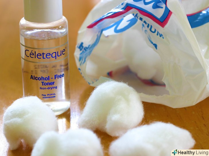 Через кілька хвилин після очищення, тонізуйте обличчя за допомогою тоніка і ватної подушечки. Тонік використовується для відновлення природного рівня рН вашої шкіри, який, ймовірно, змінився під час очищення. Відновлюючи шкіру до свого природного рН, ви також робите її більш стійкою до бактерій і мікроорганізмів. Є багато різних типів тоніка, деякі просто відновлюють рН вашої шкіри, Інші також вбивають бактерії, або залишають інгредієнт на вашій шкірі, який запобігає появі плям. Пошукайте тонік в магазинах відповідно до вашого типу шкіри. Це найістотніше для людей, у яких жирний тип шкіри. Якщо у вас не жирна шкіра, виберіть тонік для чутливої шкіри. Ось як його використовувати.- Нанесіть невелику кількість тоніка на ватний диск і просто протріть все обличчя, але будьте обережні, уникайте потрапляння на чутливу область навколо очей.