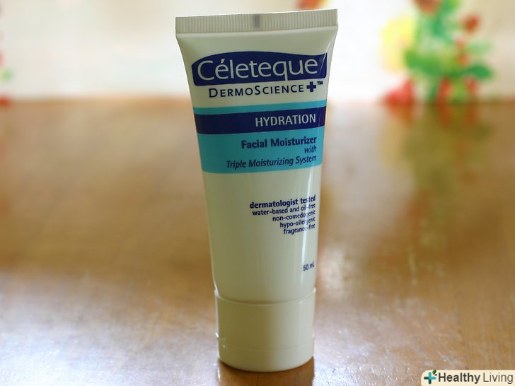 Таким чином, після очищення і тонізації ви повинні зволожити обличчя зволожуючим кремом для вашого типу шкіри. цей крок не можна пропустити, навіть якщо у вас жирна шкіра. Це особливо важливо для тих, у кого суха шкіра. Є безліч зволожуючих засобів на вибір, такі як гелі (краще для жирної / схильної до плям шкіри), креми (найкраще для сухої / чутливої шкіри) і сироватки (найкраще для нормальної / жирної шкіри). Деякі з них надають дії проти плям, деякі-проти зморшок, деякі містять штучний загар, а деякі просто зволожують.- Коли тонік висохне, нанесіть невелику краплю зволожуючого крему, м'яко втираючи круговими рухами в шкіру обличчя і шиї.