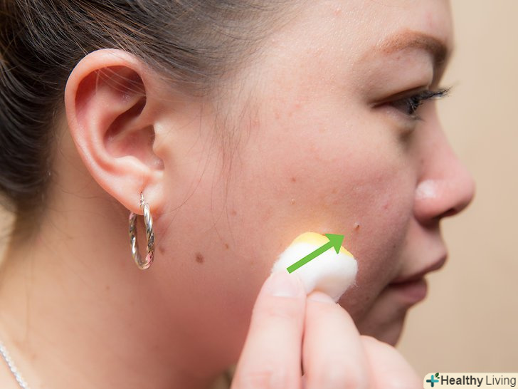 Оливкова олія можна використовувати для зняття косметики,[11] а якщо додати до нього трохи лимонного соку, то така суміш дозволить запобігти появі прищів.- Лимонний сік ефективний проти прищів, оскільки діє як дезінфікуючий засіб, який вбиває бактерії, що викликають появу прищів. [12]
