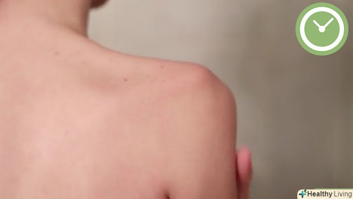 - Підготуйте шкіру до нанесення лосьйону. хоча шкіра тіла менш делікатна, ніж шкіра обличчя, її також слід підготувати до нанесення лосьйону, щоб він приніс максимальну користь. Щодня приймайте душ або ванну і використовуйте миючий засіб, що підходить для вашого типу шкіри. Акуратно розтирайте тіло мочалкою або губкою, здійснюючи кругові рухи. Двічі на тиждень замість миючого засобу використовуйте скраб, щоб позбутися від відмерлих клітин і ороговілої шкіри і поліпшити вбирання лосьйону. При цьому пам'ятайте про наступне: [10]