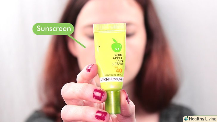 Купіть сонцезахисний засіб зі ступенем захисту 15+. спробуйте сонцезахисний крем для обличчя без запаху або масла. Це допоможе блокувати небезпечні ультрафіолетові промені, які можуть призвести до пошкодження шкіри або раку.- Зараз багато зволожуючі креми мають сонцезахисний фактор. Поекспериментуйте з різними видами кремів, щоб подивитися чи добре вони діє і зберігають вологу.