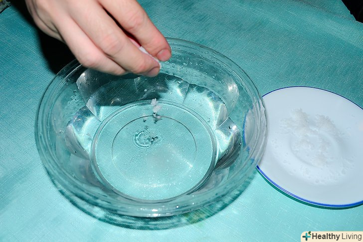 Змішайте невелику кількість солі з водою. сіль має антибактеріальні властивості, тому допоможе позбутися від неприємних плям і прищів. Змішайте жменю натуральної морської солі з середньою мискою теплої води. Перемішуйте, поки сіль не розчиниться.