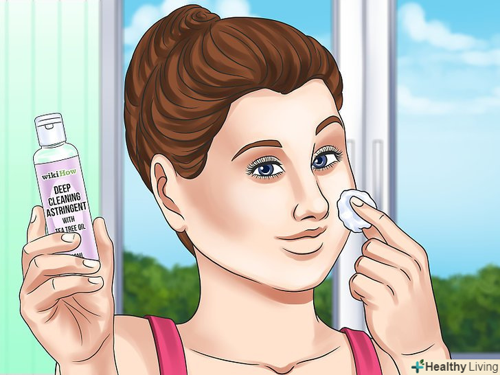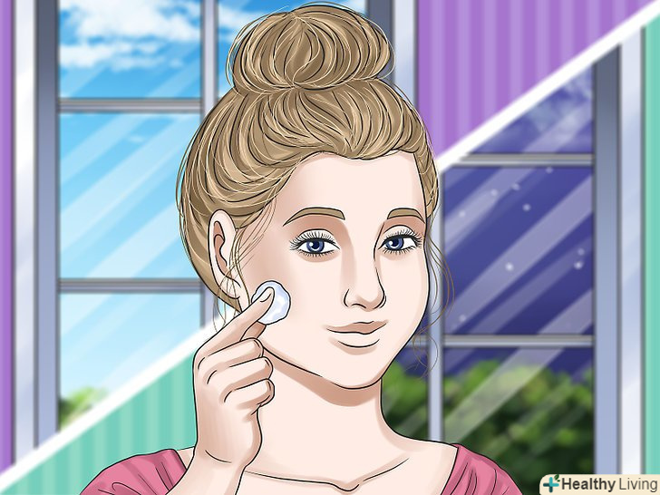Насамперед помийте обличчя. вмийтеся теплою водою і миючим засобом, а потім витріть обличчя м'яким рушником, щоб очистити шкіру обличчя. Обережно втирайте Очищуючий засіб в шкіру, щоб прибрати косметику, бруд та інші забруднення. [2] гарненько промийте обличчя теплою водою, а коли закінчите вмиватися, пару раз хлюпніть в обличчя холодною водою. Потім насухо промокніть обличчя чистим рушником. [3]