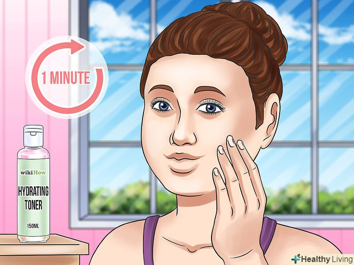 Зачекайте хвилину, поки тонік не висохне. оскільки більшість тоніків для обличчя роблять на водній основі, вони досить швидко вбираються в шкіру. Обов'язково дайте тоніку повністю вбратися в шкіру, перш ніж наносити інші косметичні засоби. Це допоможе зберегти вологу і захистить шкіру від забруднень.