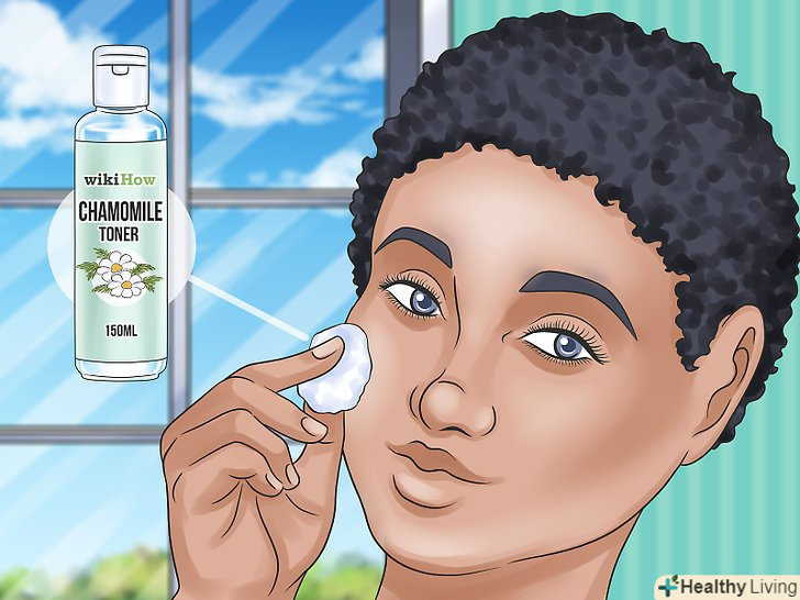 Купіть тонік з ромашкою, щоб пом'якшити шкіру. якщо ви страждаєте від сухості, почервоніння або підвищеної чутливості шкіри, спробуйте тонік з ромашкою. [11] Ромашка допоможе зменшити подразнення шкіри, знебарвить чорні точки, допоможе проти вугрів і поверне здоровий колір обличчя. [12]- Поєднання ромашки і алое віра допомагає впоратися з екземою і розацеєю. [13]