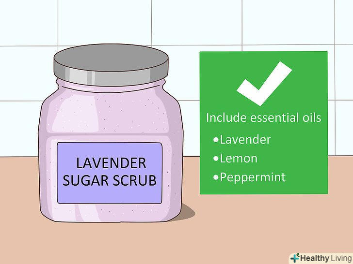 Виберіть аромат, грунтуючись на його терапевтичних властивостях. шукайте скраби з ефірними маслами, які відповідають вашим потребам. Наприклад, якщо ви відчуваєте стрес, то аромат лаванди заспокоїть вас. І якщо ви відчуваєте втому, то аромат лимона або м'яти наповнять вас енергією. [4]- До інших популярних ароматерапевтичних масел відносяться евкаліпт (для очищення носа), пачулі (для зниження тривоги) і розмарин (для підвищення концентрації). [5]