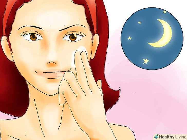 Нанесіть зволожуючий крем безпосередньо перед сном, якщо у вас суха шкіра. завдяки цьому шкіра буде вбирати вологу під час сну. Приділяйте особливу увагу сухим ділянкам шкіри. [10]