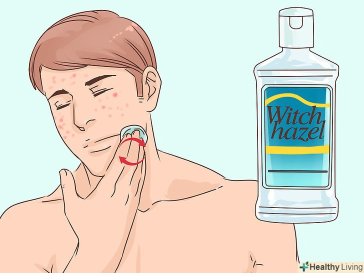 Протріть прищ гамамелісом. Гамамеліс-це в'яжучий засіб, який сприяє відтоку рідини з прищів. Це дозволить зменшити запалення і почервоніння. [10]