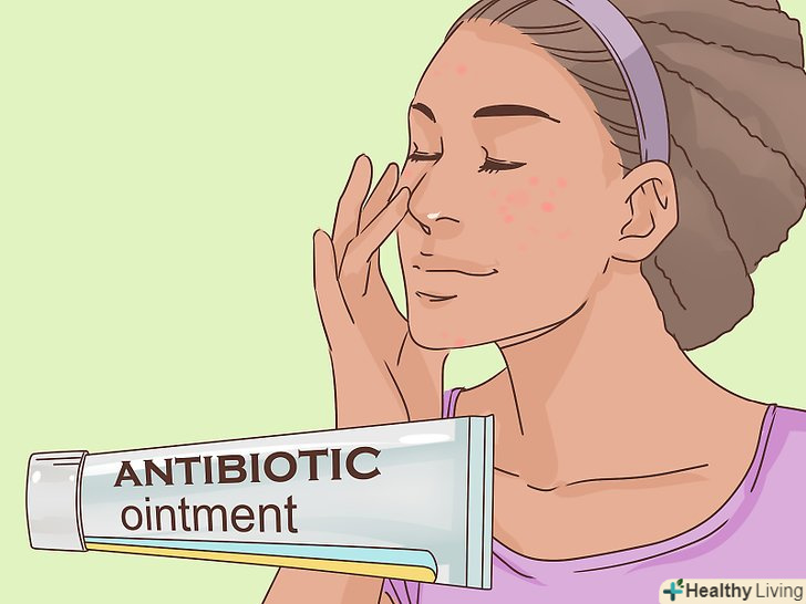 Втирайте в прищ мазь з антибіотиком. лопнув прищ вважається відкритою раною, тому мазь або розчин допоможуть шкірі зажити. Нанесіть на прищ мазь з антибіотиком (Neosporin, наприклад), щоб захистити її і прискорити загоєння.- Якщо у вас немає мазі з антибіотиком, в якості альтернативи скористайтеся органічними розчинами, наприклад гамамелісом або теплою водою з сіллю.