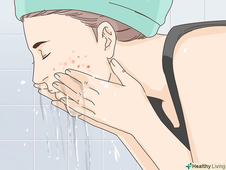 Вмийтеся. ретельно вимийте руки, перш ніж доторкнутися до обличчя. Обережно Вимийте обличчя теплою водою з м'яким милом або миючим засобом для обличчя. Мийте обличчя повільними круговими рухами. Коли закінчите, сполосніть обличчя теплою водою і витріть його чистим бавовняним рушником. [4]