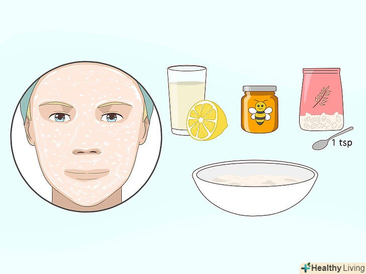 В якості натурального скрабу приготуйте маску з лимона, меду і вівса. якщо змішати натуральні освітлюючі шкіру кошти з отшелушивающими інгредієнтами, вийде маска, яка освітлює шкіру завдяки тому, що видаляє більш темний верхній шар клітин, і одночасно злегка відбілює залишилася молоду шкіру. Спробуйте використовувати маску з лимонного соку, меду і 1 чайної ложки (1 грама) меленого вівса. Нанесіть її на обличчя і будь-які інші ділянки, залиште на 20 хвилин, потім змийте. [13]- Змивайте маску акуратними круговими рухами кінчиків пальців. Мелений овес видалить з обличчя відмерлі клітини і оголить під ними більш світлу шкіру.