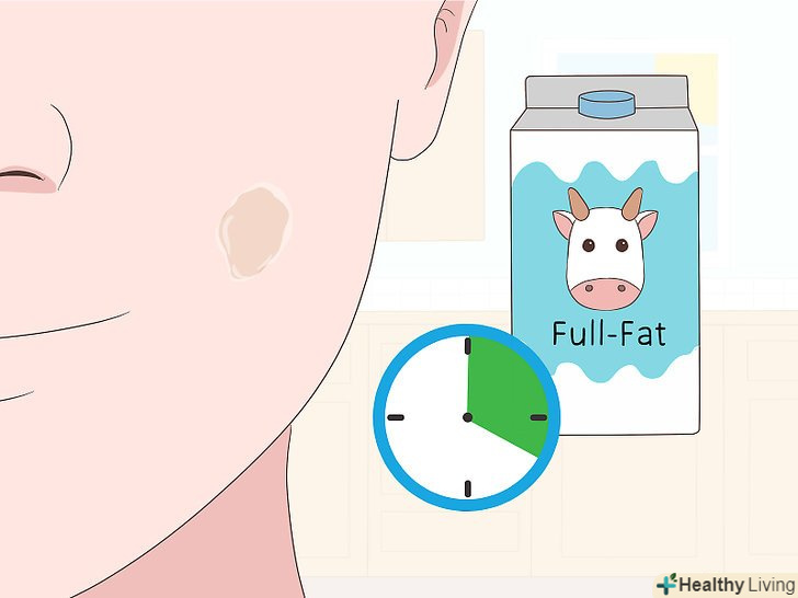 Змочуйте шкіру йогуртом або молоком, щоб освітлити і зволожити її. занурте ватяну кульку в несолодкий йогурт або незбиране молоко і промокніть їм шкіру. Залиште йогурт або молоко приблизно на 20 хвилин, потім змийте теплою водою. [15]- Молоко і йогурт містять альфа-гідроксикислоти, які м'яко відлущують шкіру.