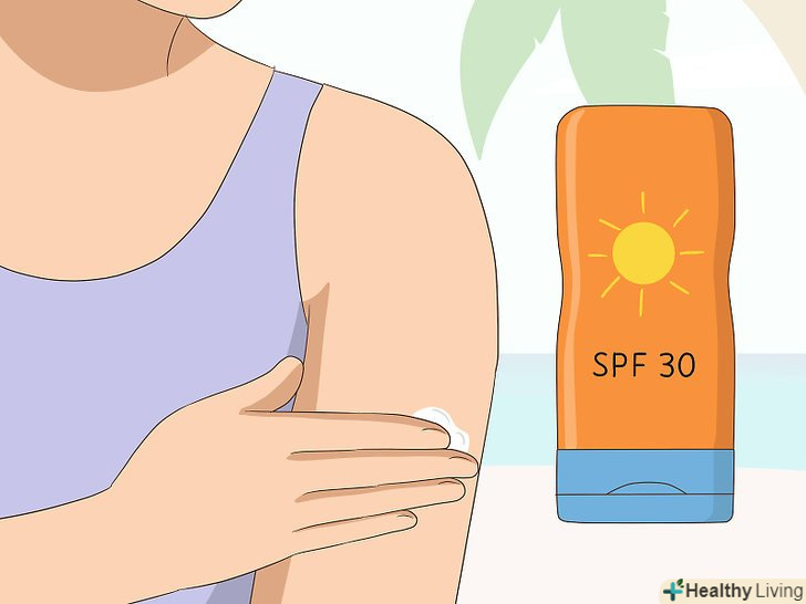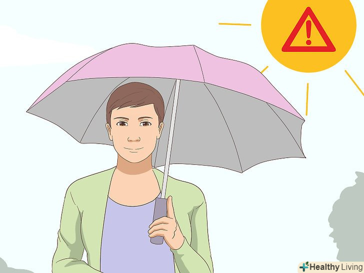Прикривайтеся від сонця, коли перебуваєте на вулиці, навіть якщо ви нанесли сонцезахисний крем. навіть якщо шкіра покрита сонцезахисним кремом, вона може трохи почервоніти і потемніти в результаті того, що ви знаходитесь на вулиці, особливо влітку, коли сонячне світло найбільш яскравий. Щоб уникнути цього намагайтеся якомога більше перебувати в тіні, коли вам доводиться виходити з дому. [4]- Наприклад, для кращого захисту можна надягати легкий одяг з довгими рукавами і крислатий капелюх, а також ховатися від сонця під парасолькою або в тіні дерев.
