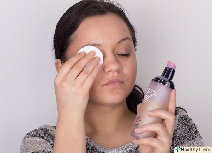 Очищайте шкіру обличчя. вмивайтеся один або два рази на день, щоб очистити пори шкіри від бруду, бактерій, жиру і різних засобів. Вмивайтеся теплою водою і м'яким миючим засобом вранці і перед сном. Щоб знизити ризик утворення вугрів і подразнення шкіри, змивайте верхній шар макіяжу.- З віком зменшується вироблення шкірного жиру. В результаті умивання двічі в день може висушувати шкіру. Замість цього вранці мийте обличчя теплою водою, а ввечері перед сном вмивайтеся більш ретельно з використанням м'якого миючого засобу. [15]