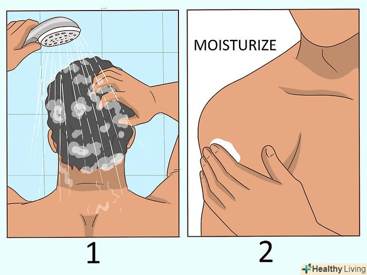 Прийміть душ і зволожите шкіру. коли закінчите засмагати, зайдіть всередину і прийміть швидкий душ. Змийте з шкіри все лосьйони і масла, які при тривалому контакті можуть закупорити пори. Зволожите шкіру після душу, так як вона, швидше за все, висохла під впливом сонця. [10]- Неважливо, який душ приймати-гарячий або холодний.