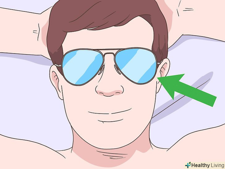 Захистіть очі сонцезахисними окулярами. навіть у похмурі дні очі потребують захисту від сонця. Якщо ви плануєте провести час зовні в денний час, одягніть сонцезахисні окуляри, щоб захистити очі від шкідливих сонячних променів. [11]