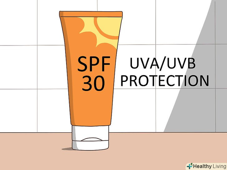 Виберіть Безпечний сонцезахисний крем. Використовуйте сонцезахисний крем, який захищає шкіру від УФ-A і УФ-B променів. Сонцезахисний крем з SPF 30 повинен забезпечити вас адекватним захистом. Креми з SPF вище 30 не забезпечують значно більший захист від сонця, ніж сонцезахисний крем з SPF 30. [5]