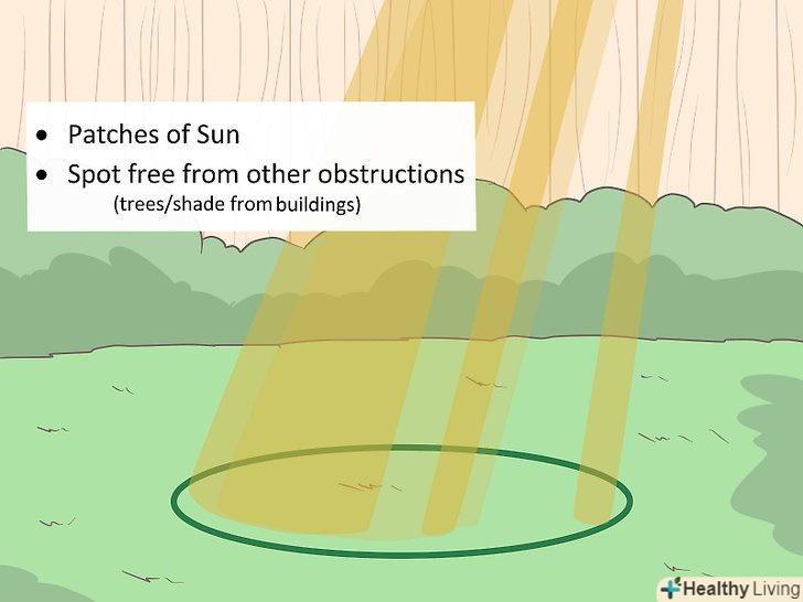 Виберіть відкрите місце. знайдіть місце з мінімальною кількістю хмар. Якщо на вулиці похмуро, шукайте невеликі видимі проблиски Сонця. Крім того, відповідне місце не повинно бути загороджено деревами або тінню від будівель.