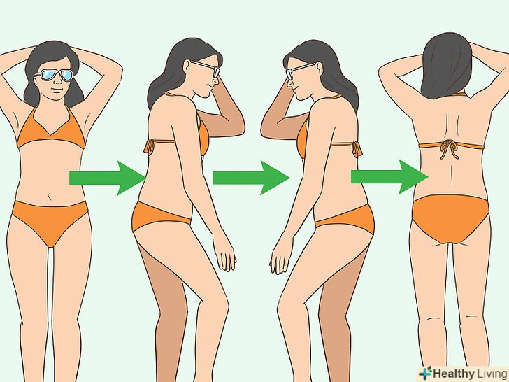 Не загоряйте нерухомо. не лежіть на одному місці, поки засмагаєте, так як це може привести до нерівного загару. Періодично міняйте положення тіла, щоб всі його частини засмагли рівномірно. Наприклад, якщо ви лежите на спині, переверніться на бік. Через кілька хвилин переверніться на інший бік, а потім на спину. [7]