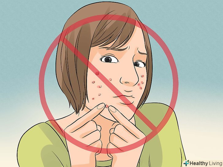 Не дратуйте шкіру. у вас може виникнути бажання зіпхнути або видавити прищі, але це завжди веде лише до більшого почервоніння і збільшує термін загоєння. Крім того, не відлущуйте шкіру обличчя занадто сильно, так як це провокує більше запалень. [13] скоротіть видимість акне, не роблячи його ще червонішим.