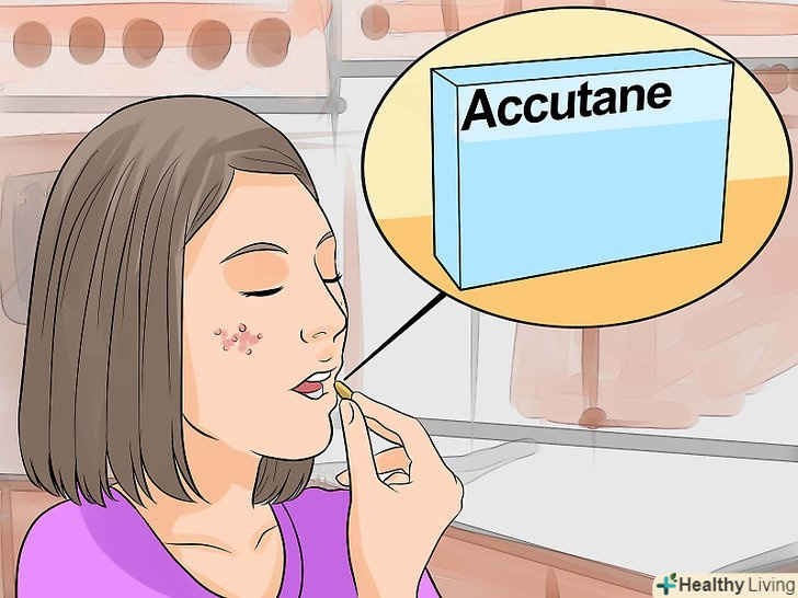 Подумайте про застосування ізотретиноїну як останньої надії. ізотретиноїн ("Роаккутан") — це сильнодіючі ліки, яке часто повністю очищає шкіру від акне. [22] у зв'язку з поширеними і часом серйозними побічними ефектами, дерматологи, як правило, не прописують цей засіб до тих пір, поки інші методи не зазнають невдачі. До поширених побічних ефектів відноситься сухість шкіри, біль в суглобах і часта кровотеча з носа. А до рідкісних, але серйозних побічних ефектів відноситься погіршення зору [23] і проблеми з травленням, які потенційно можуть призвести до запалення кишечника. [24] і хоча зазвичай все проходить, після того як пацієнт перестає приймати ліки, деякі побічні ефекти можуть не відступати роками. [25] незважаючи на ці ризики, більшість пацієнтів залишається задоволеним кінцевим результатом. Головне, прийміть обдумане рішення, обговорюючи з лікарем дане лікування.- Ні за яких обставин не приймайте ізотретиноїн, якщо ви вагітні або намагаєтеся завагітніти. Ці ліки викликає серйозні патології плода.