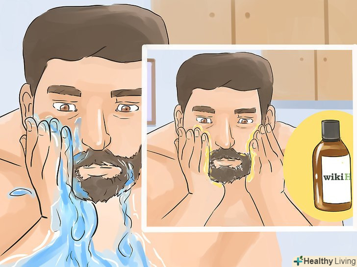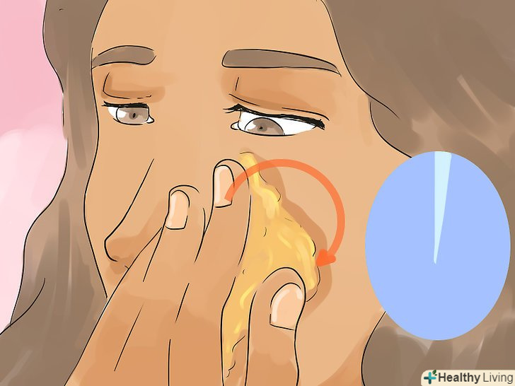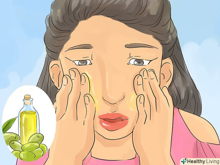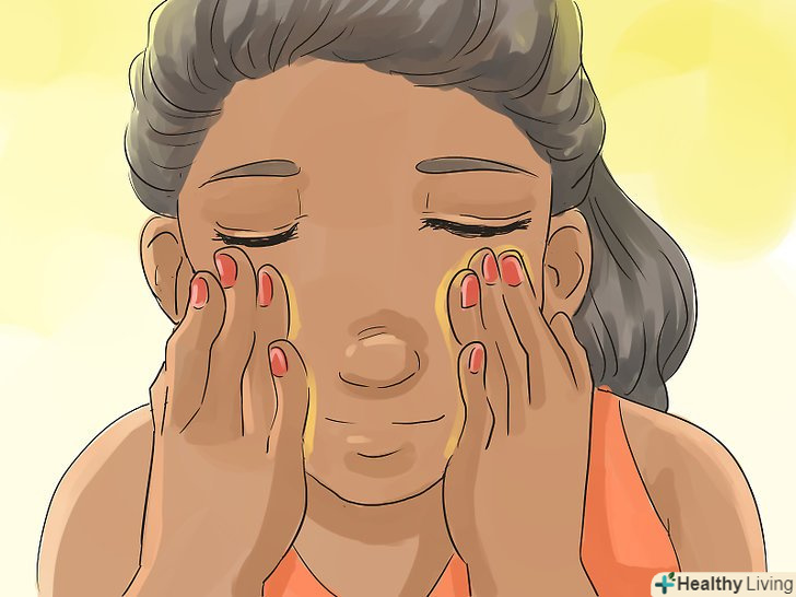 Втирайте масло в шкіру протягом двох хвилин. розподіліть масло по кінчиках пальців і акуратно втирайте засіб в шкіру. Здійснюючи кругові рухи кінчиками пальців, розподіліть масло по щоках, лобі, підборідді і носі. Вам потрібно втирати масло в шкіру протягом двох хвилин. [3]- Масло в поєднанні з круговими рухами допоможе видалити бруд, шкірне сало і омертвілі клітини шкіри.