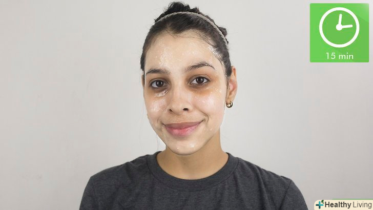 Залиште маску на 15 хвилин. за цей час шкіра отримає все необхідне, і коли ви змиєте маску, вона буде виглядати яскравіше і свіже. Якщо ви хочете розслабитися, поки маска буде робити свою справу, поріжте огірок на скибочки, ляжте в зручному місці і покладіть скибочки огірка на очі. Завдяки цьому маска не буде потрапляти в очі, а огірки зволожать ваші повіки.- Змийте маску. через 15 хвилин використовуйте теплу воду, щоб змити маску. Мед-дуже липкий компонент маски, тому ретельно змийте всі її сліди. Використовуйте м'який рушник, щоб промокнути шкіру насухо.