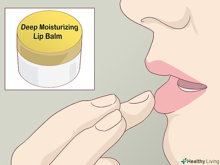 Наносите бальзам для губ кілька разів протягом дня. зволоження протягом дня має важливе значення для здоров'я і краси ваших губ. Якщо у вас дуже сухі губи, можна більш інтенсивно використовувати зволожуючий бальзам. Замість нього можна використовувати і звичайний бальзам для губ. [8]- Тримайте бальзам завжди під рукою. Використовуйте його в міру необхідності.