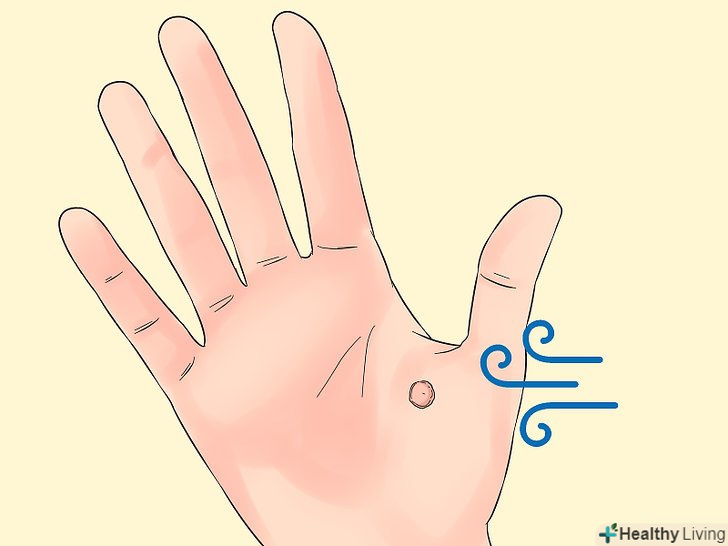 Знайте — якщо мозоль невелика, їй потрібно «дихати». невеликі непошкоджені мозолі зникнуть самі по собі через кілька днів. Немає необхідності протикати їх або перев'язувати. Просто по можливості» не турбуйте " мозоль максимальну кількість часу. [1]- Якщо мозоль на нозі, носіть вдома сандалі або вільні тапочки, щоб дати їй час зажити.