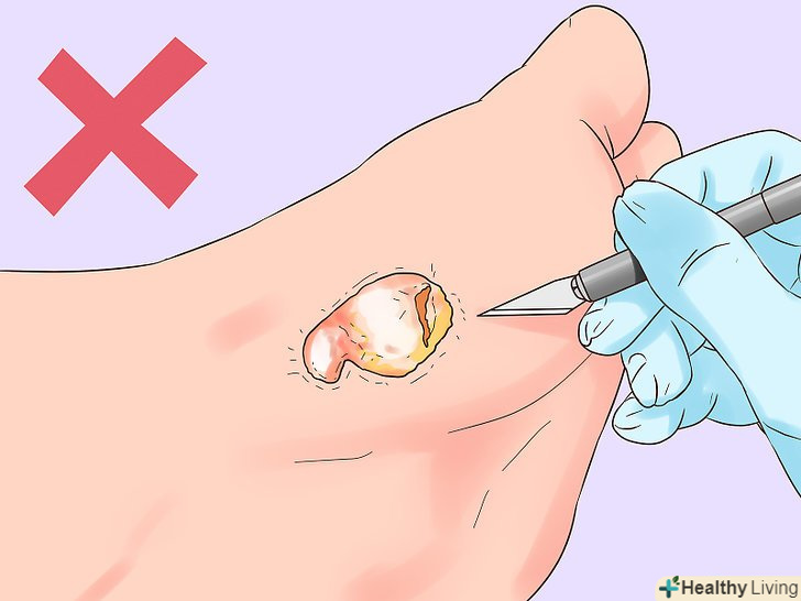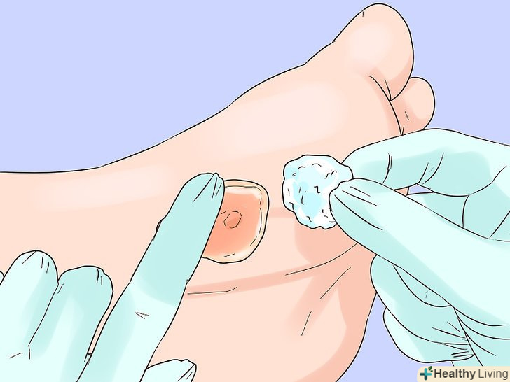 Акуратно промийте уражену область. очистіть велику мозоль і прилеглу до неї область теплою мильною водою. Обов'язково робіть це чистими руками, так як в мозоль може легко проникнути інфекція. [3]- Будьте обережні, очищаючи мозоль. Намагайтеся не чіпати її, поки не зможете лопнути її безпечним способом.