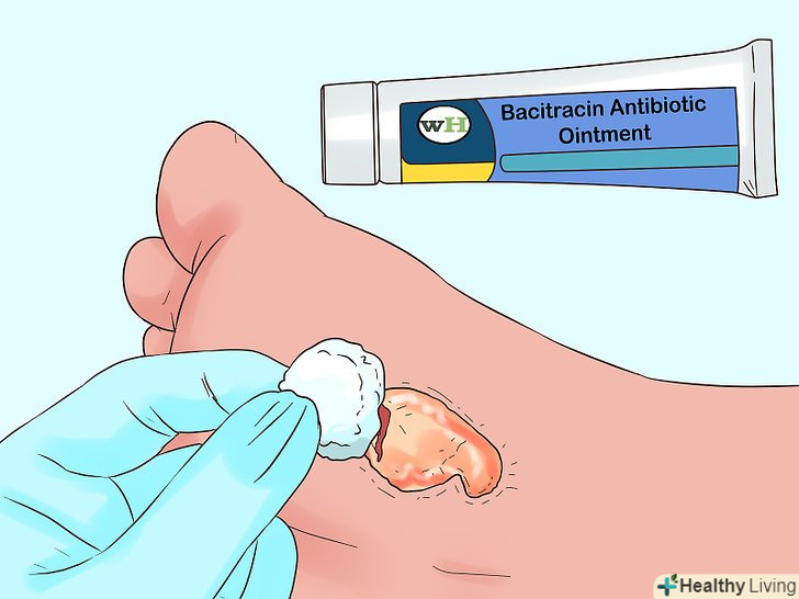 Нанесіть мазь на мозолі, які осушили. за допомогою ватного диска нанесіть 2-відсоткову саліцилову мазь або» Левомеколь " на уражену область. Це запобіжить інфікування рани і не дасть пластиру прилипнути до шкіри. [6]- У деяких людей проявляється алергія на антибактеріальні препарати. Якщо ви-один з них, нанесіть на уражену область вазелін.