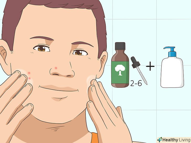 Додайте масло чайного дерева до свого очищаючого або зволожуючого засобу для обличчя. кілька крапель допоможуть впоратися з особливо наполегливими прищами. Додайте від 2 до 6 крапель в залежності від того, наскільки сильним ви хочете зробити засіб. [6]- Слідкуйте за тим, щоб воно не потрапило в очі — масло чайного дерева може викликати біль або печіння.