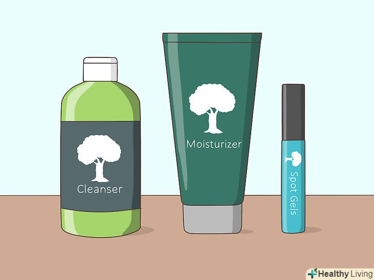 Придбайте продукцію по догляду за шкірою з чайним деревом. багато компаній почали використовувати чайне дерево в своїй продукції по догляду за шкірою, так як воно має антибактеріальні та протизапальні властивості. Якщо вам здається, що ефірна олія занадто сильна для вас або якщо ви не хочете робити кошти самостійно, покупка продукції на основі чайного дерева може бути хорошим варіантом. [8]- Особливо популярні очищаючі і зволожуючі засоби, а також точкові гелі з вмістом екстрактів чайного дерева.