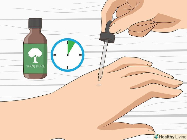 Протестуйте масло чайного дерева на своїй шкірі. перед нанесенням перевірте засіб на здоровій ділянці шкіри. Видавіть краплю масла на руку або іншу легкодоступну область шкіри і залиште на кілька хвилин. Якщо на шкірі не з'явилося ніяких ознак роздратування, значить, це засіб підходить вам для боротьби з акне. [2]- Якщо масло чайного дерева викликало роздратування на шкірі, ви можете або не користуватися ним, або розбавити його.