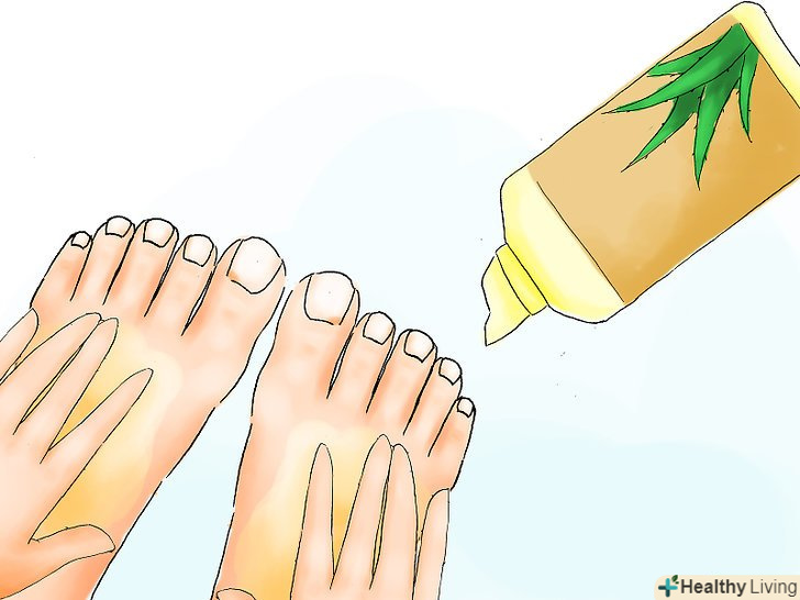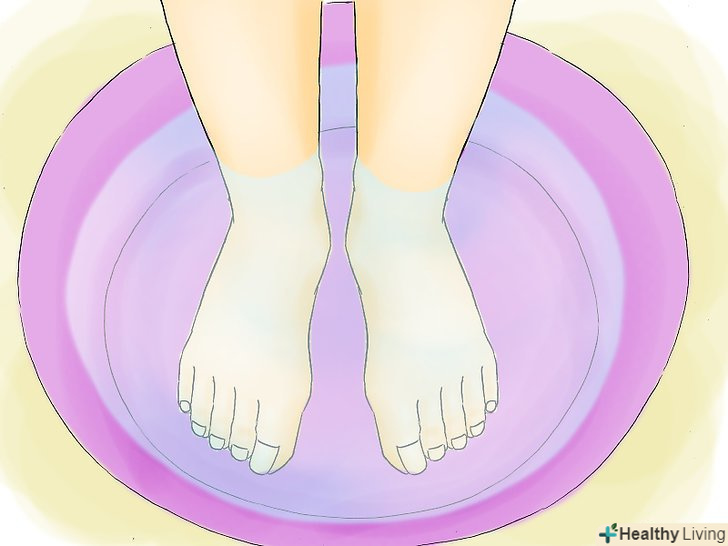 - Для цієї мети можна також використовувати епсомскую сіль. Додайте півсклянки англійської солі в тазик зі злегка теплою водою і тримайте в ній стопи 20 хвилин. Протріть ступні насухо і потім додайте дві краплі олії перцевої м'яти в використовуваний вами зволожуючий засіб, після чого втирайте отриману суміш в шкіру стоп. [22]