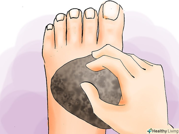 - Якщо стопи занадто потріскалися або пересохли, купіть кускову пемзу або бритву для видалення мозолів. Ці пристосування нагадують люфу і призначені для видалення омертвілих шарів шкіри з різних ділянок, таких як п'яти, область між пальцями ніг і щиколотки.