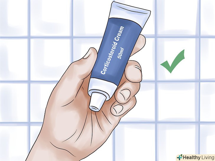 Використовуйте рецептурний крем з кортикостероїдами. зверніться до лікаря або дерматолога (фахівця з шкірних захворювань) і отримаєте належну діагностику стану вашої шкіри. Якщо вищевказані заходи не допомагають, зверніться до лікаря за рецептом кортикостероїдного крему. Кортизон, преднізол та інші кортикостероїди є сильнодіючими протизапальними компонентами, що знижують почервоніння шкіри і зменшують свербіж. [16]- Преднізол сильніше кортизону і часто є хорошим варіантом при важких сонячних опіках, псоріазі і алергії, так як зменшує запалення шляхом зміни розмірів капілярів під шкірою і придушення реакції імунної системи.