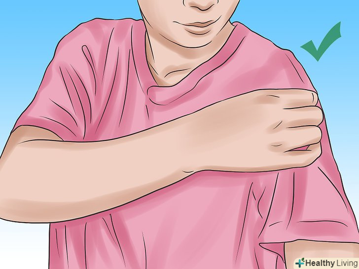 Носіть гладкий і вільний одяг з бавовни. крім того, що це вбереже вашу роздратовану шкіру від впливу сонця і зведе до мінімуму можливість її дряпання, м'яка бавовна (або шовк) є найбільш зручними варіантами одягу, так як вони більш делікатно взаємодіють зі шкірою і дозволяють їй дихати, на відміну від штучних волокон. [3] саме тому слід носити одяг з бавовни і шовку, а також намагатися уникати виробів з колючої вовни і штучних тканин, таких як поліестер, які не дають шкірі дихати, призводять до підвищеної пітливості і подальшого подразнення.- Поки ви знаходитесь вдома, намагайтеся носити вільний бавовняний або шовковий одяг з широкими рукавами. Також змініть Вашу постільну білизну на більш тонке і м'яке; в зимові місяці фланель підійде найкраще.