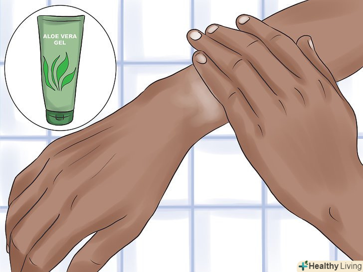 Нанесіть гель Алое вера. незалежно від причини запалення шкіри, алое вера є популярним рослинним засобом для боротьби з цією проблемою, яке особливо ефективно діє при сонячних опіках. Воно має властивість заспокоювати роздратовану і сверблячу шкіру, зменшує її чутливість і значно прискорює процес загоєння. [10] алое також має антимікробні властивості, що особливо корисно, якщо стан вашої шкіри викликано грибковою або бактеріальною інфекцією. Наносите гель алое вера або лосьйон на сверблячі ділянки шкіри кілька разів на день; особливо інтенсивно це слід робити протягом перших днів після того, як ви помітили роздратування.- Алое Віра містить полісахариди, які допомагають зволожувати вашу шкіру і зберігають її в належному стані. Також цей препарат стимулює вироблення колагену, який надає шкірі еластичність.